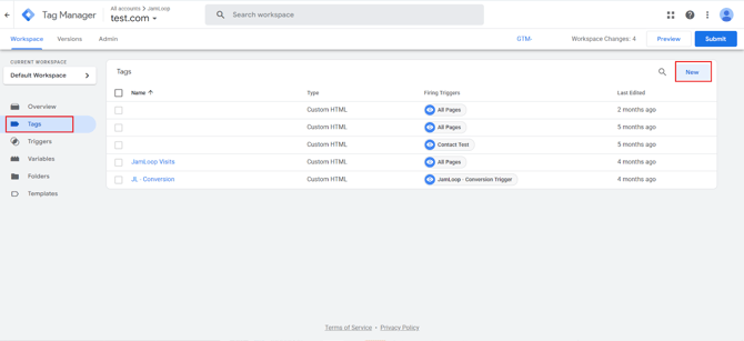 Choose the container associated with the website where you want to install the JamLoop pixel.